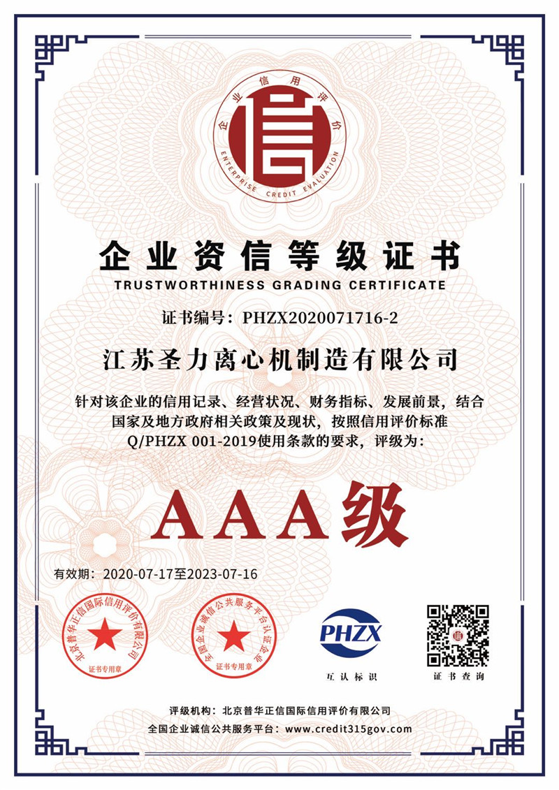 江蘇圣力離心機制造有限公司是國內分離機械行業中主要的離心機生產企業,對離心機的研究、設計、制造有多年的歷史,擁有齊全的設備、完善的檢測手段。公司已通過IS09000國際質量體系認證、ISO14001環境管理體系認證、ISO45001:2018職業健康安全管理體系認證和CE認證,是江蘇省高新技術企業,曾榮獲國家和地方多項榮譽稱號。